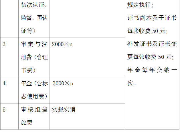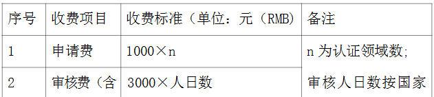 a)申请费:初次认证、再认证、增加认证领域、变更认证范围等的申请费用。